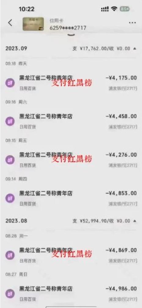 无独有偶,近期有不少代理商和持卡人刷卡均发现自己的POS机开始固定商户不变了。如下图所示:刷出来的都是黑龙江省二号称青年店。已经一个月没变换商户了。而自己的汇丰银行已因此被停止使用也就是封卡!