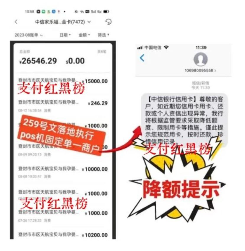 也有持卡人反馈,随这259号文落地执行POS机固定单一商户,自己刷卡都显示登封市市区航天宝贝与我孕婴店。同时自己也收到了中信银行信用卡的“警告短信”!