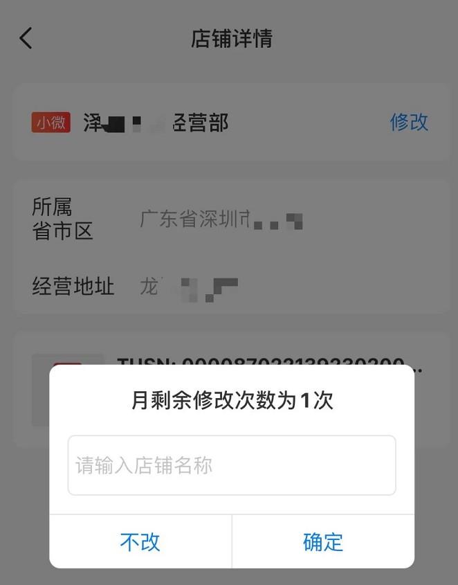 登陆商户小程序-首页-商户名称,此处变更,一天可修改一次