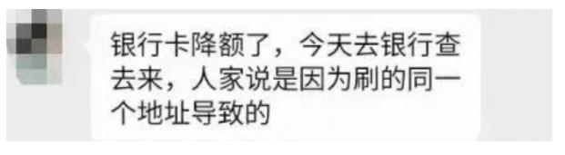 上周也同样接到用户反馈,自己的信用卡被降额了,打电话问发卡行客服,给出的答复是:总是在同一个地址消费,导致信用卡被降额。