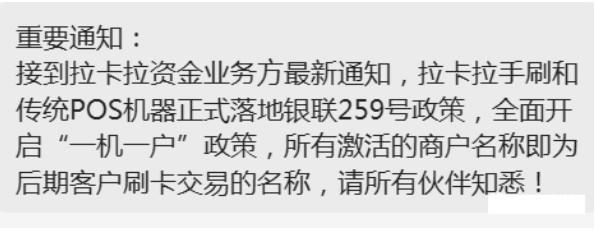 9月13日,行业龙头老大拉卡拉率先通知全面落实,执行一机一码政策;