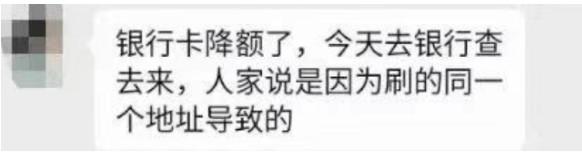 25号同样接到用户反馈,自己的信用卡被降额了,打电话问发卡行客服,给出的答复是:总是在同一个商户上消费,导致信用卡被降额。