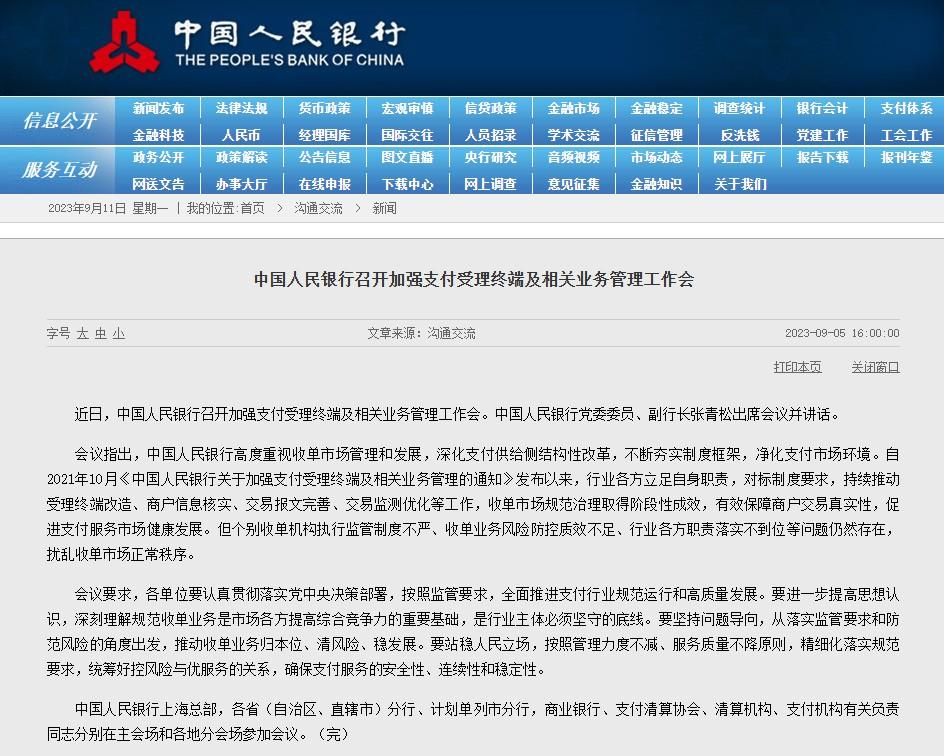 近日,央行又召开了加强支付受理终端及相关业务管理的会议,其中,持续推动受理终端改造、商户信息核实、交易报文完善、交易监测优化等工作,收单市场规范治理取得阶段性成效,有效保障商户交易真实性,促进支付服务市场健康发展。进一步推进落实259号文件的实施。