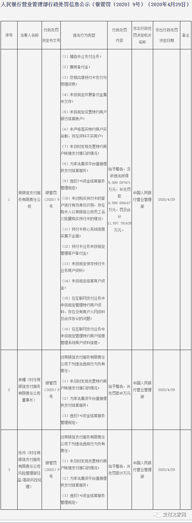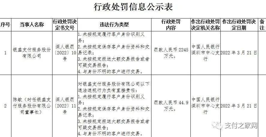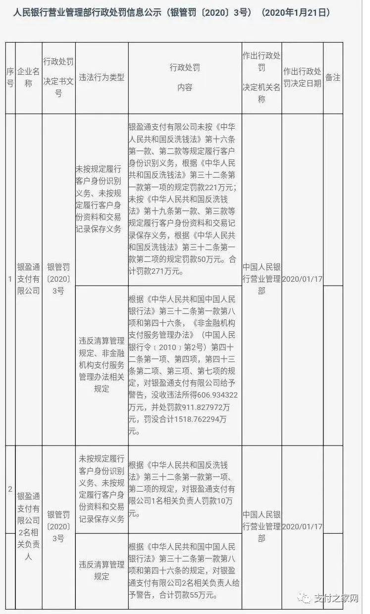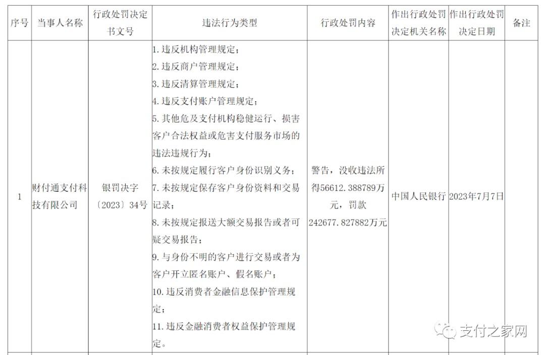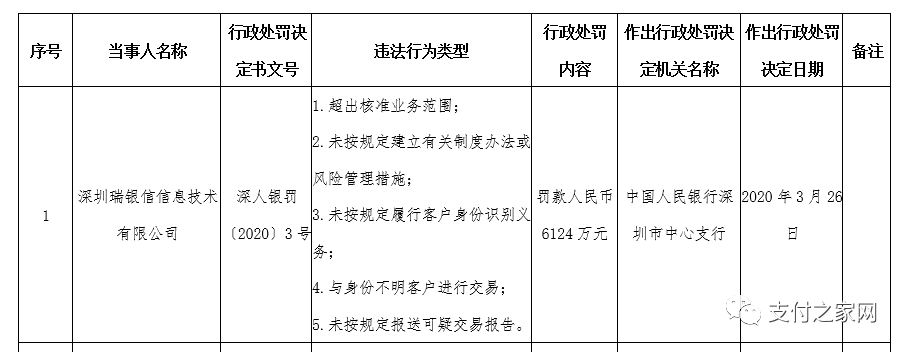罚款排行榜:做支付千万要小心,因为央行有千万罚单