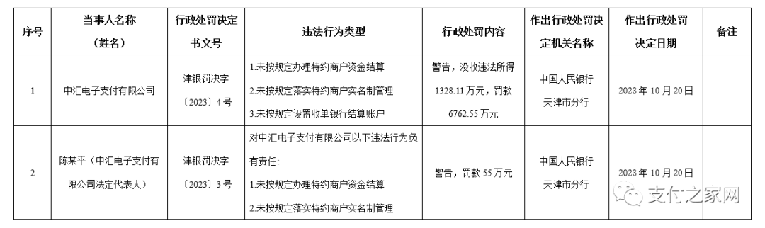 中汇支付此次罚没合计8090.66万元,涉及金额可进入支付机构“天价罚单”前TOP5之列。