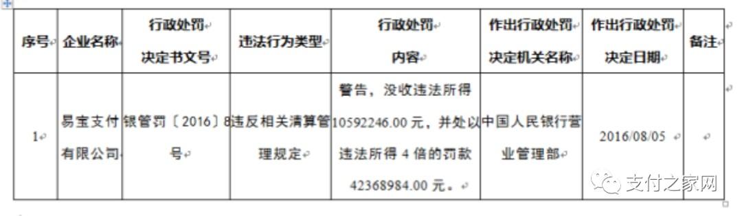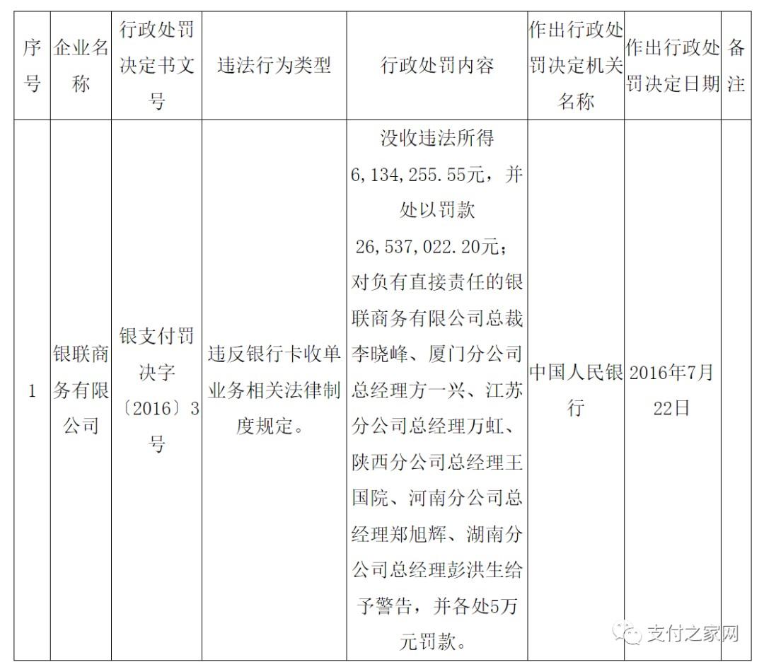 处罚决定书文号:银支付罚决字〔2016〕3号