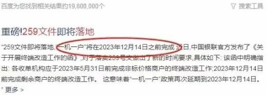 所谓259号文,即人民银行在2021年发布的《关于加强支付受理终端及相关业务管理的通知》(银发〔2021〕259号),该政策多维度加强了支付受理终端业务管理和特约商户管理,明确规定1台银行卡受理终端只能对应1个受理终端序列号,即“一机一码”;1台银行卡受理终端只能对应1个特约商户,即“一机一户”。