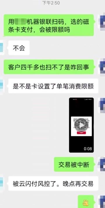 但是,有些客户上来就来个猛的,直逼两万的额度去扫,结果交易直接被银联中断,明显被银联风控了。