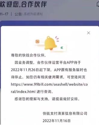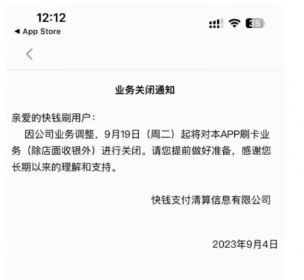 快钱支付发通知与代理商提前解除合作,彻底告别“T现”市场