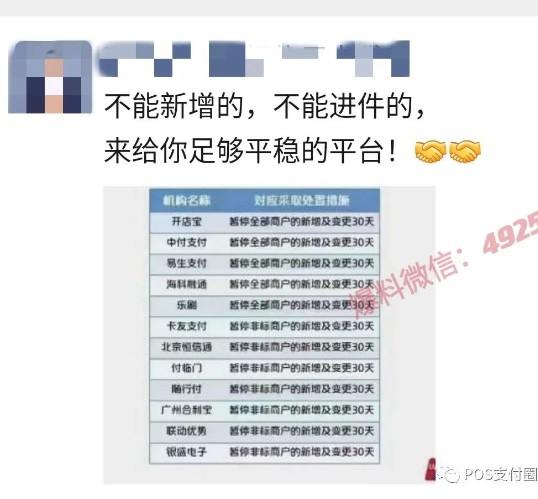 近日,一张截图刷爆支付圈,疑似12家支付POS机公司被监管处置,要求停止新增商户30天。