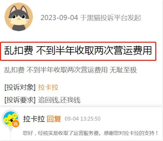 近日,用户投诉拉卡拉POS机乱扣费,不到半年收取两次运营服务费!