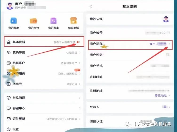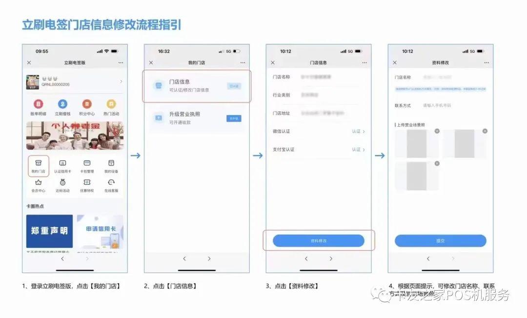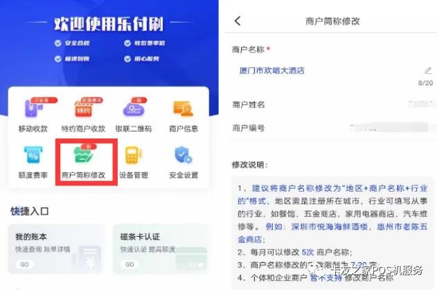 在首页修改商户名称(不需要上传门店照片),修改成功后再交易就会显示修改后的商户名称。
