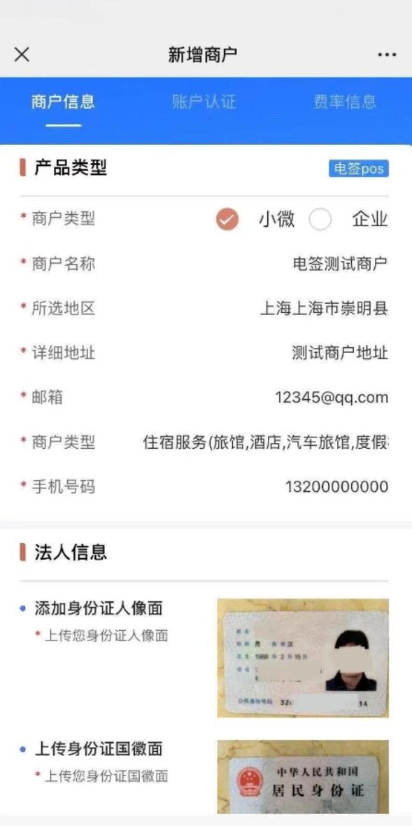 第一步:选择商户类型,填写商户店铺信息,上传商户个人信息