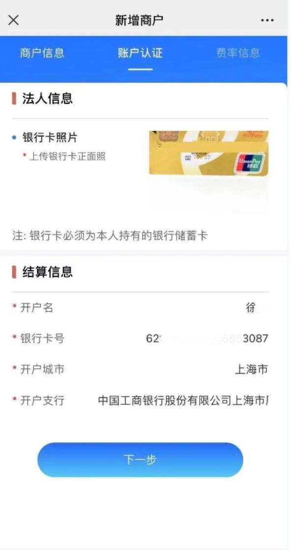 第二步:填写商户结算银行账户信息