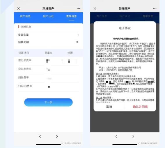 第三步:确认费率,同意并签署商户电子协议提交审核,等待审核通过