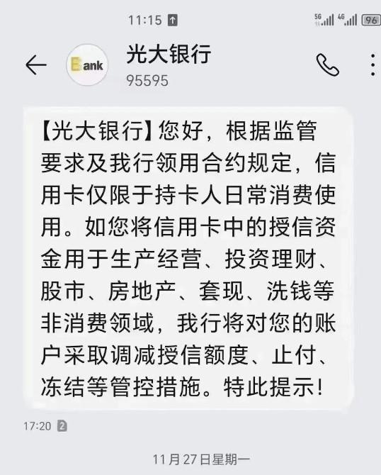 光大银行:将采取调减授信额度、止付、冻结等管控措施。
