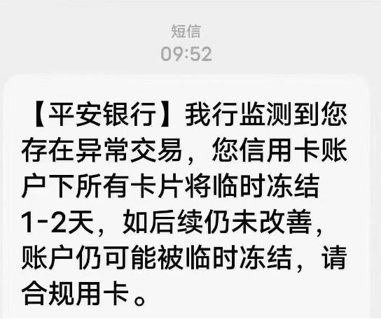 平安银行:将临时冻结账户下所有卡片1-2天,如后续仍未改善,账户仍可能被临时冻结。