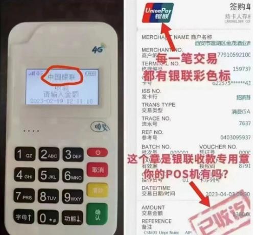 办理POS机一定要能够秒到账的,如果没有到账一定要及时联系业务员,避免让自己造成不必要的损失。通过正规POS后台我们可以看到,有银联认证的彩色签购单,可以查看到账卡以及交易时间