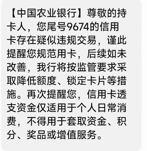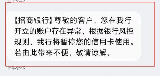 招商银行:根据银行风控规则,将暂停信用卡使用。