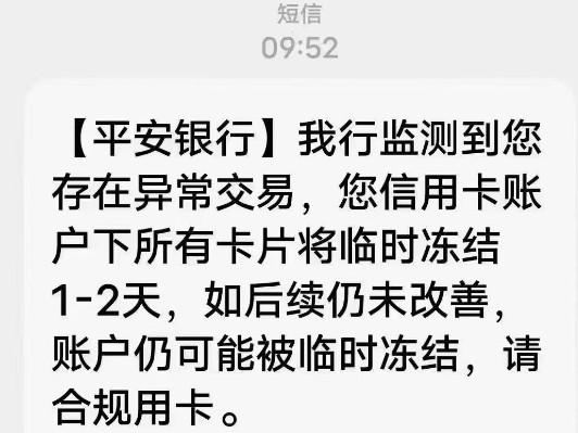 平安银行:将临时冻结账户下所有卡片1-2天,如后续仍未改善,账户仍可能被临时冻结。