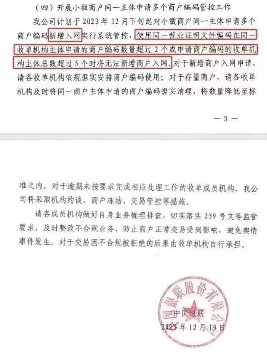 2、同一身份证注册小微商户的收单机构不得超过5个。