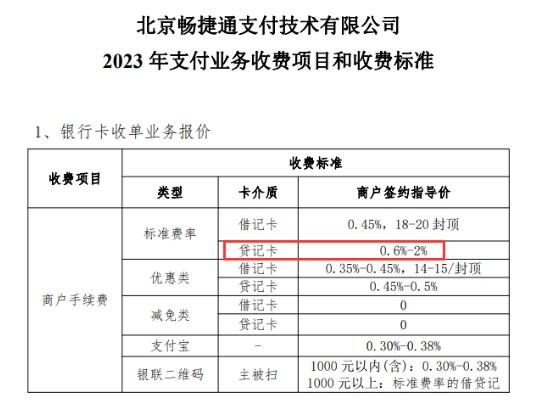 畅捷通POS机贷记卡费率范围为0.6%-1%