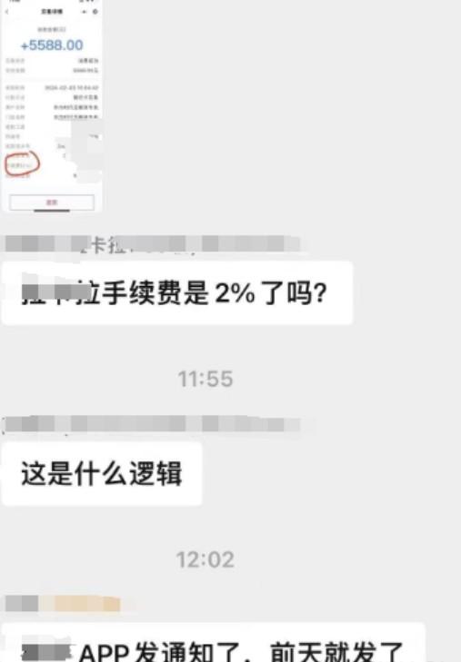 拉卡拉费率暴力涨价2%的手续费,刷一万扣200