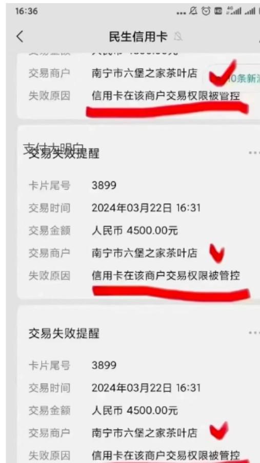 有的银行就提醒用户:交易失败,在该商户交易权限被管控。
