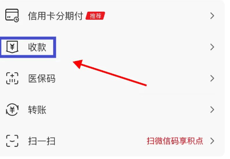 第二步:点击“收付款”以后,会出现付款页面,在屏幕的下半部分,有一个“收款(蓝色方框内)”,点击“收款”