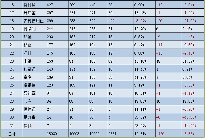 3月份跟1月份的数据对比,更能说明问题,去了银联商户和农村信用社的数据,3月份跟1月份的数据基本上持平。