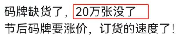 有人称已经卖了20万张码牌了