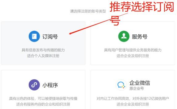 ●选择个人注册或企业注册(推荐选择一天发一次的订阅号)