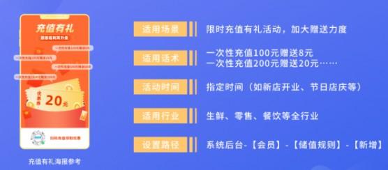储值有礼阶梯型储值赠送规则,满足不同顾客消费需求;会员预存金额增加店铺流动资金同时,提高会员忠诚度。