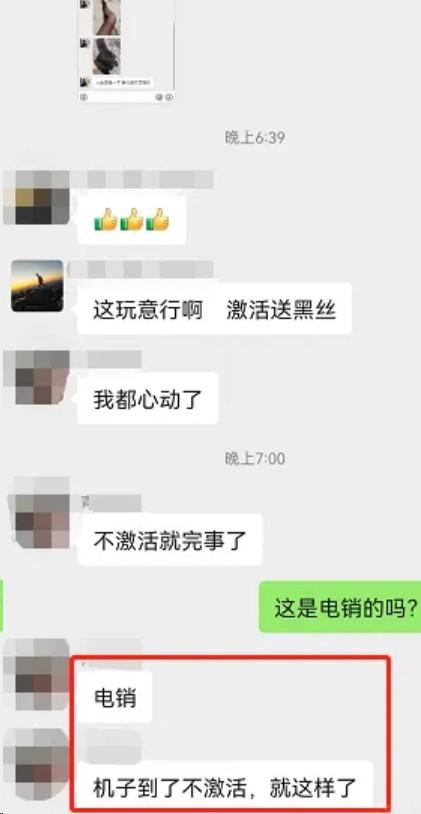 因该代理收到了电销的机器,不激活,电销发来了2个图,说激活机器,把黑丝寄给他。