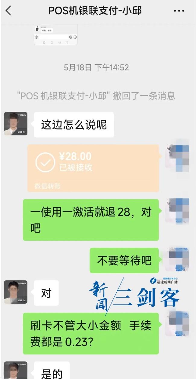 据爆料人讲述他接到了开店宝人员电话,推销办理POS机,对方说他们的POS机和其他品牌相比手续费很低,别家费率都是六个点,而他们只有两个多点。爆料人同意办理,就提交了身份证、银行卡办理了POS机。但爆料人本人并没有开店,这名开店宝营销人员就给爆料人发来一张营业执照照片和一张店面门头照片,爆料人看到店面门头是一家五金店,营业执照上名字是爆料人的名字,这营业执照是开店宝营销人员帮着做的,爆料人把这些内容传到一个小程序,就激活了POS机。