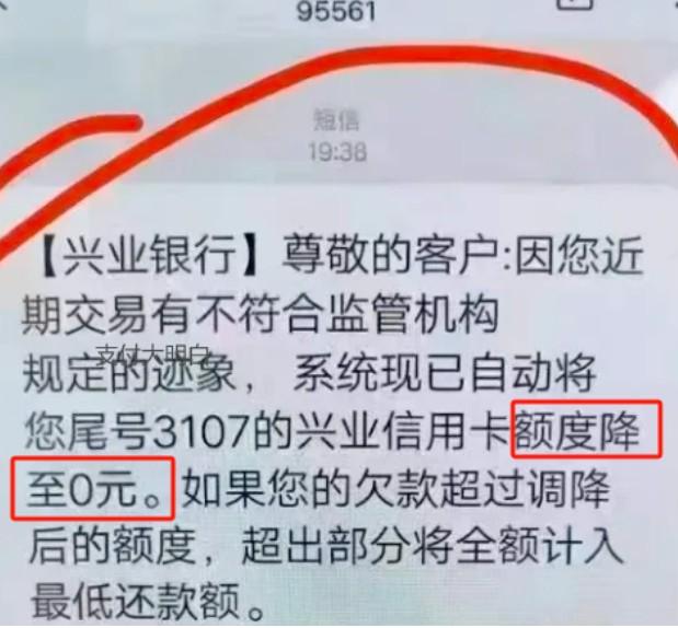 有人因:您近期交易有不符合监管机构规定的迹象,系统现已自动将您卡额度降至0元。