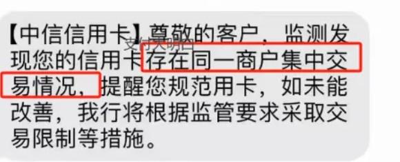 中信提示:监测发现您的信用卡存在同一商户集中交易情况。