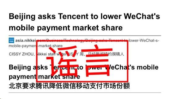 微信支付被要求降低市场份额,相关传闻不实,纯属谣言
