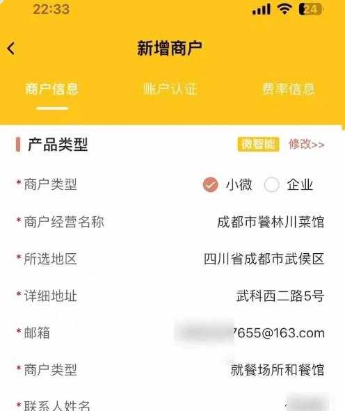 第一步:选择商户类型,填写商户店铺信息,上传商户个人信息