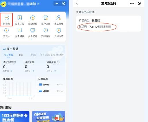 (1)商户报备成功,即可放心输入激活码激活机器交易;