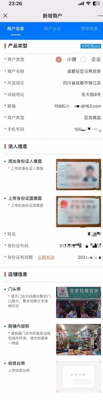 2、上传的结算卡必须是商户本的银行卡。请绑定一类银行卡,如果是二类银行卡,单笔超过1万,无法入账。尽量选择大银行,地方小银行会出现到账演出的情况。