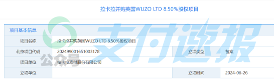 近日,持牌支付机构拉卡拉支付股份有限公司(以下简称“拉卡拉”)立项欲并购英国WUZO的8.5%股份。