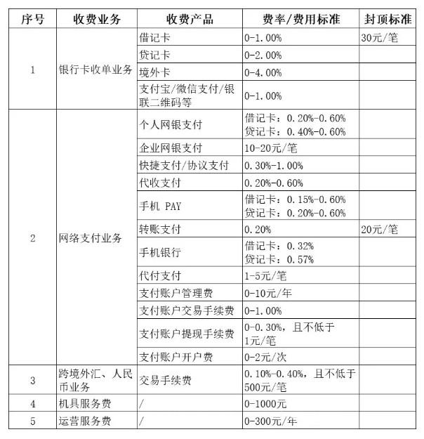 拉卡拉5月公示的收费项目及收费标准。数据来源:拉卡拉官方网站