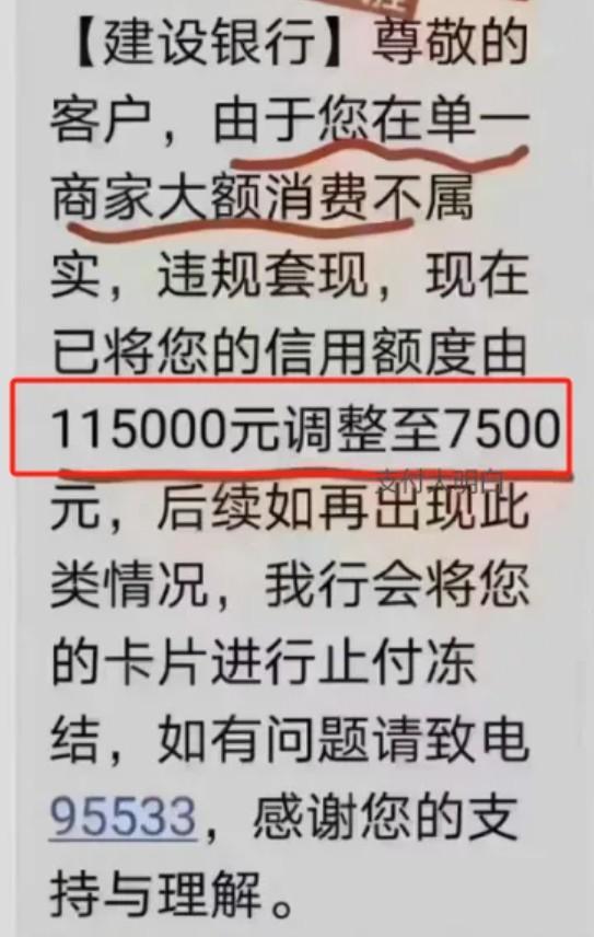 因您长期单一商户消费不符合规定,永久调整降低额度