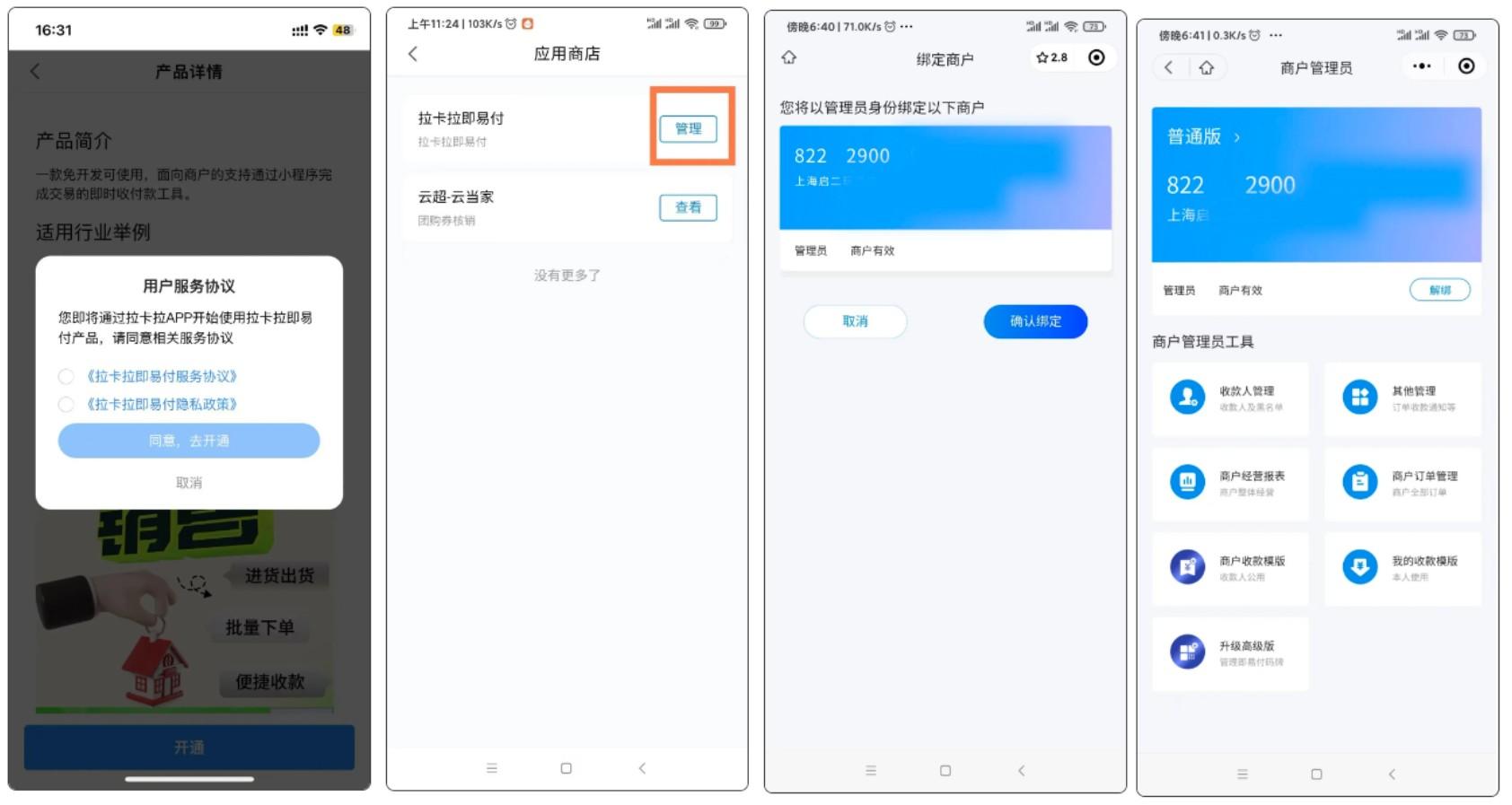 2,如果您已经是拉卡拉商户,可通过拉卡拉钱包App直接开通即易付,具体操作详情: