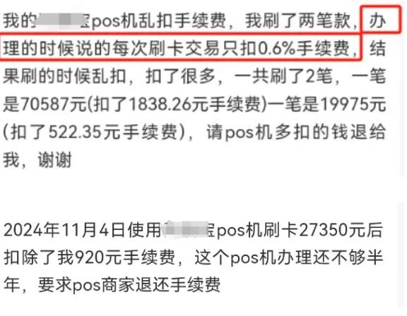 用户在使用机器的时候,要注意先刷小额的测试一下费率,费率不高的再刷大额。一次性刷大几万的,手续费可能就扣你一两千。