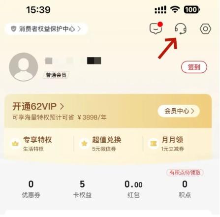 第一步,打开云闪付APP,首页右下角有一个“我的”,进去以后点击右上角的“耳麦(客服)”图标。