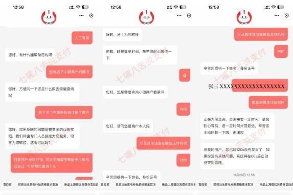 第三步:然后咨询客服如何查询名下注册的小微商户的信息,一般都会转接给更高权限的客服。(因为我只是测试,所以就没继续等下去)