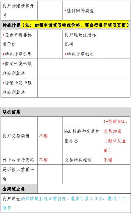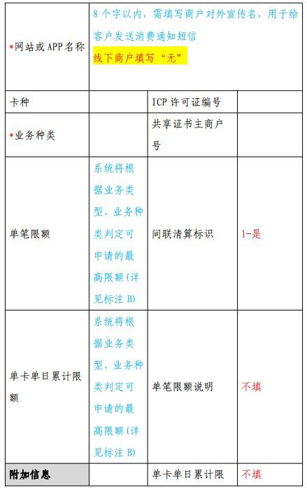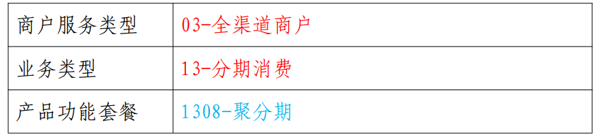 备注: 服务商名称填写“无”。产品类型“信用卡分期”,商户类型“普通分期商户”