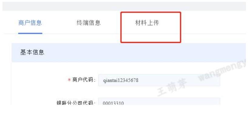 点击“暂存”后,回到页面最上面“材料上传”,系统会根据产品和价格的情况直接反显出该商户可能需要录入的材料